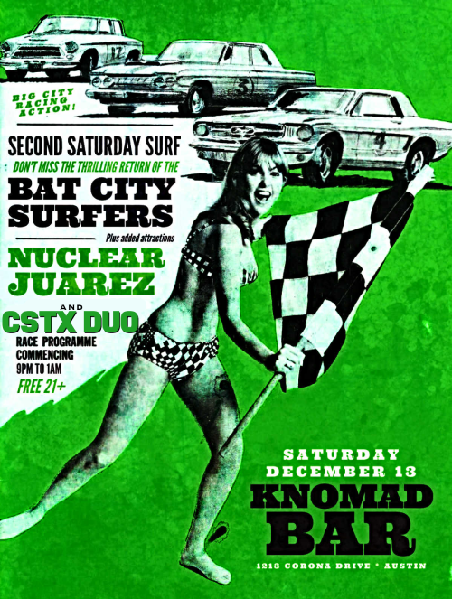 9pm - CSTX Duo 10pm - Bat City Surfers 11pm - Nuclear Juarez