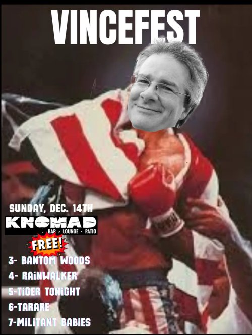 3pm - Bantam Woods 4pm - Rainwalker 5pm - Tiger Tonight 6pm - Tarare 7pm - Militant Babies