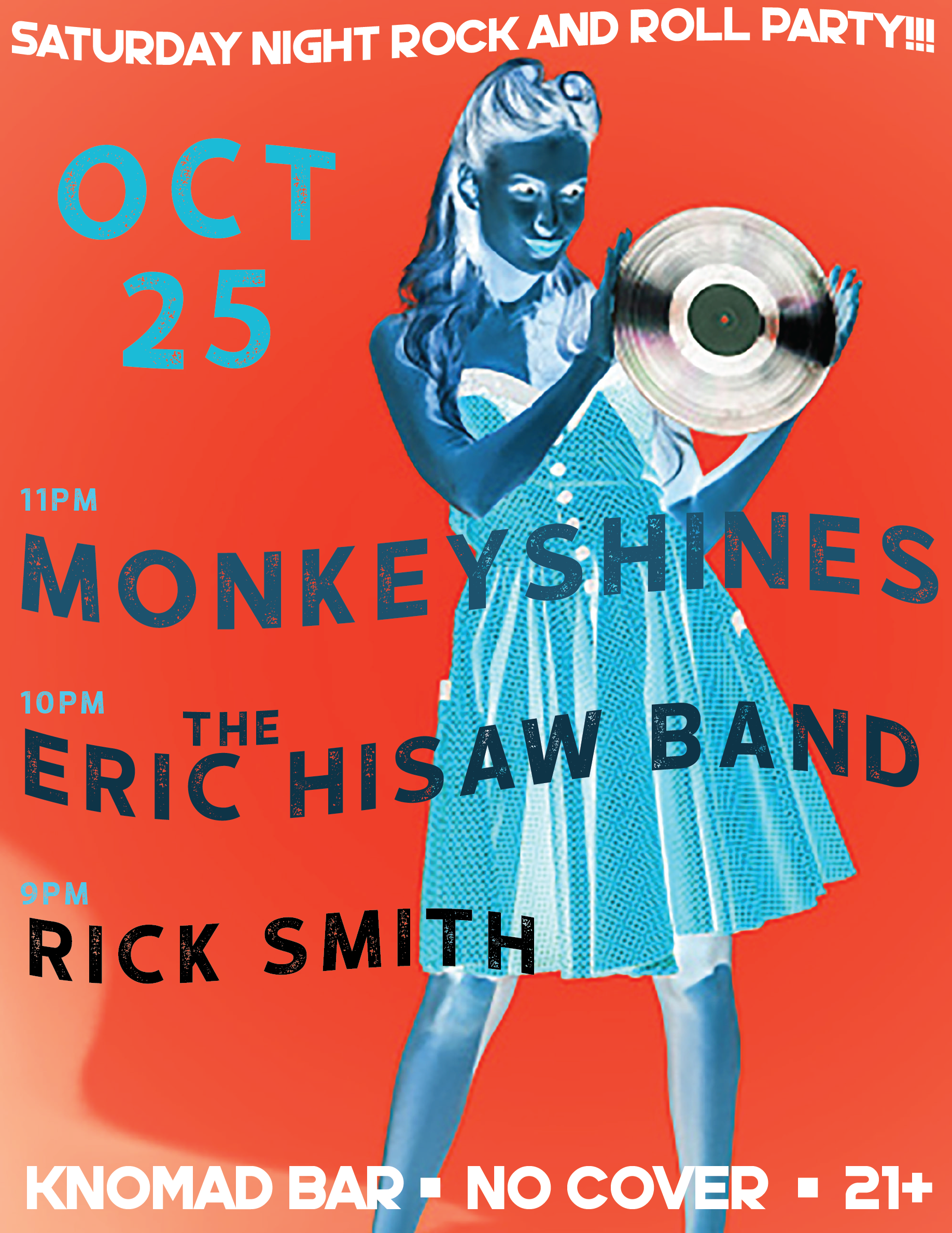9pm - Rick Smith 10pm - The Eric Hisaw Band 11pm - Monkeyshines